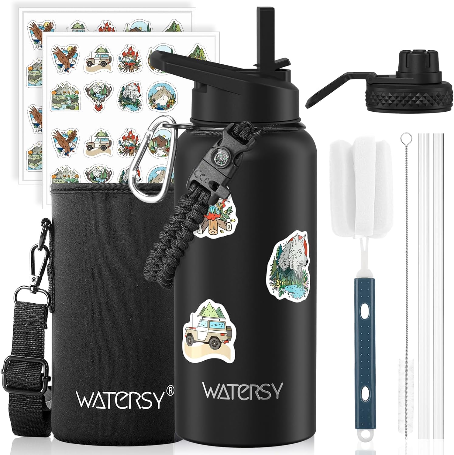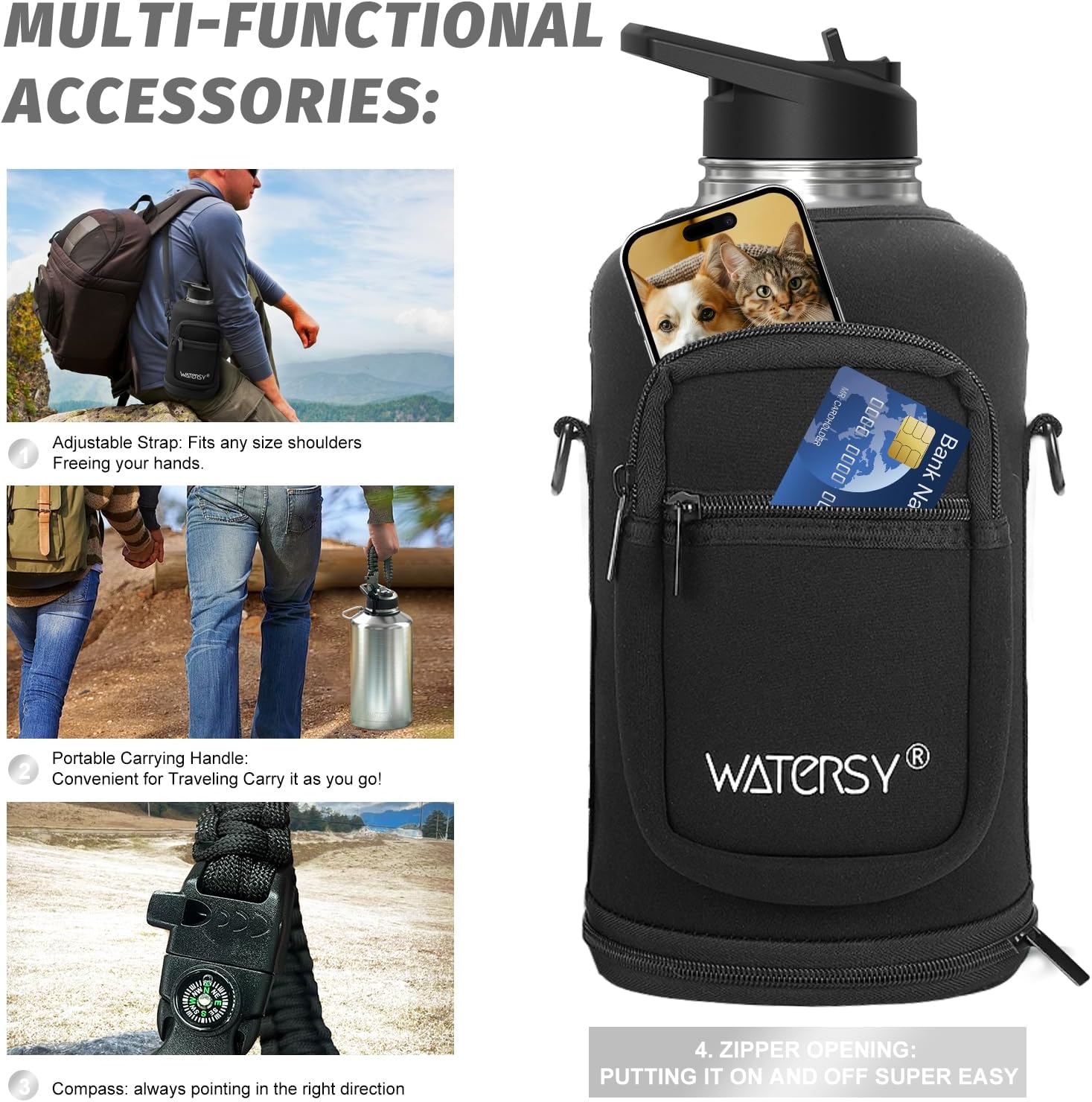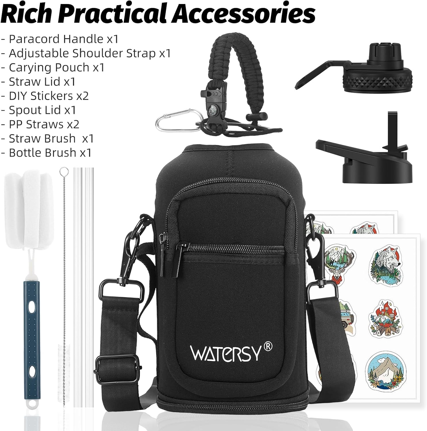 87oz Insulated Water Bottle (Cold for 48 Hrs),BPA Free&Leak Proof,1.5 Gallon Stainless Steel Water Flask,Water Jug with Straw Spout Lids for Gym,Hiking,Camping,Stainless