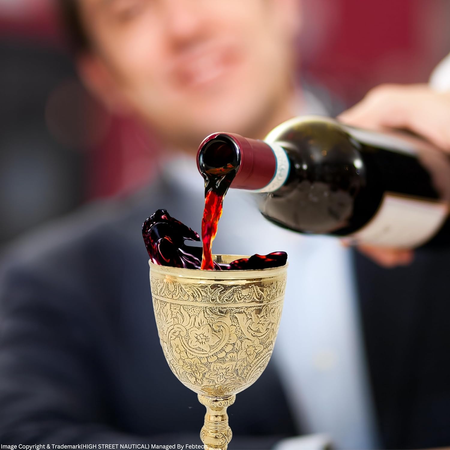 Elevate your celebratory occasions with the Highstreet Nautical Renaissance Elegance Vintage Brass Chalice Goblet Set.
