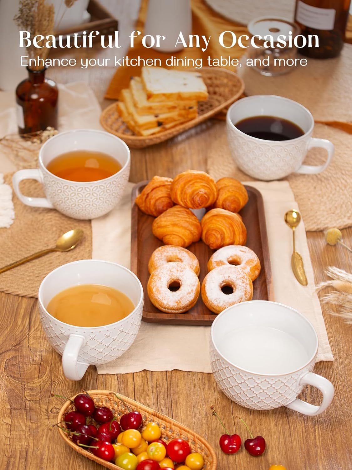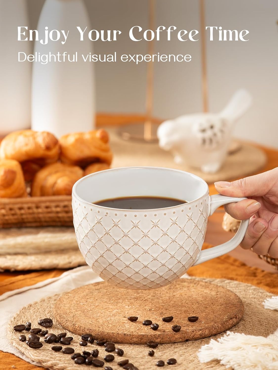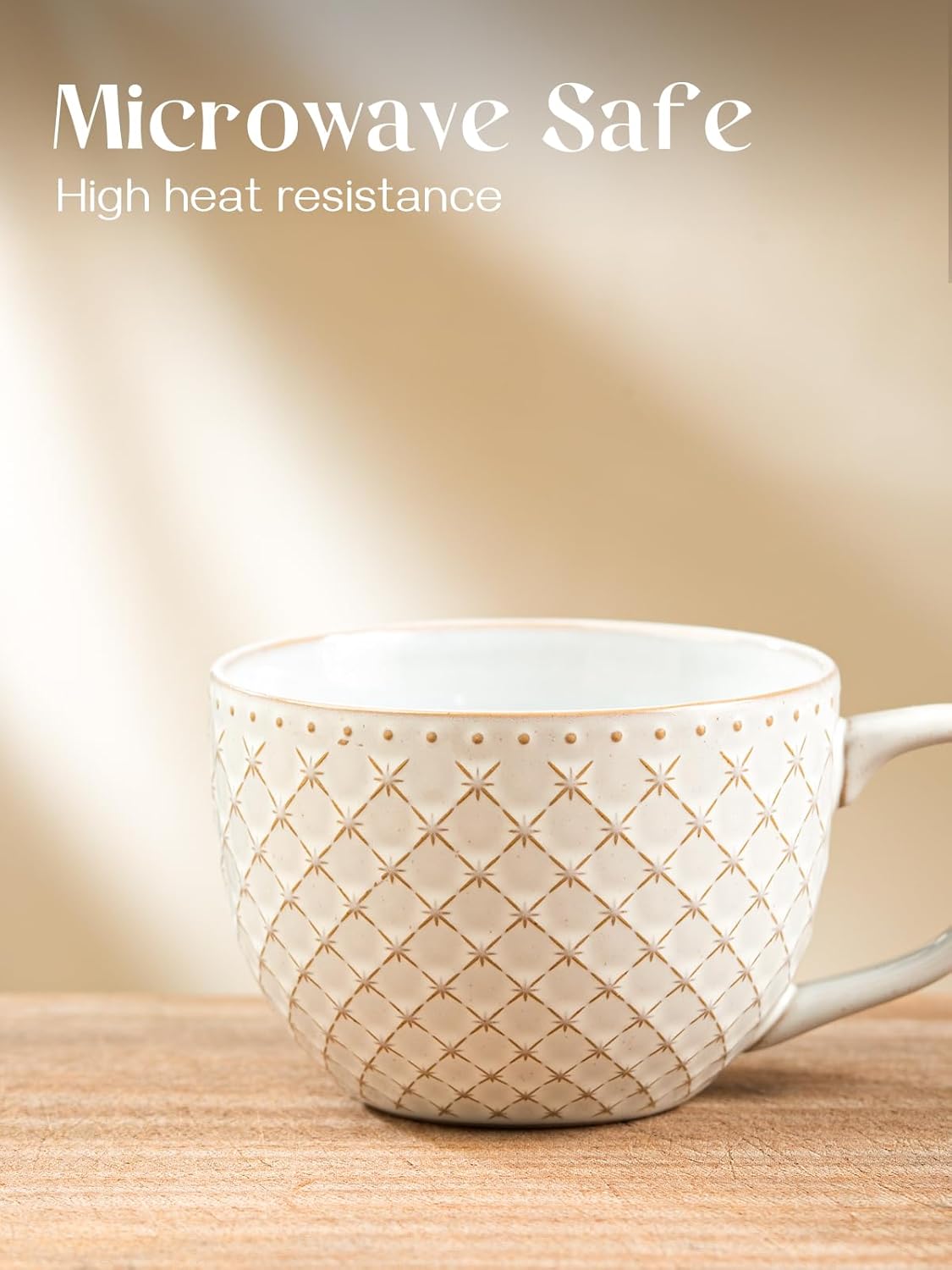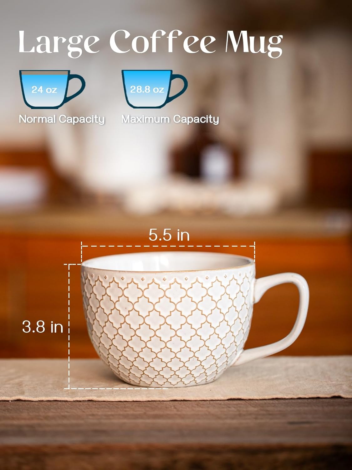 DOWAN 24oz Coffee Mug Set of 4, Large Soup Mugs, Vintage Embossed Mugs with Handle for Enjoying Coffee, Soup, Ramen, and Cereal at Home or in the Office