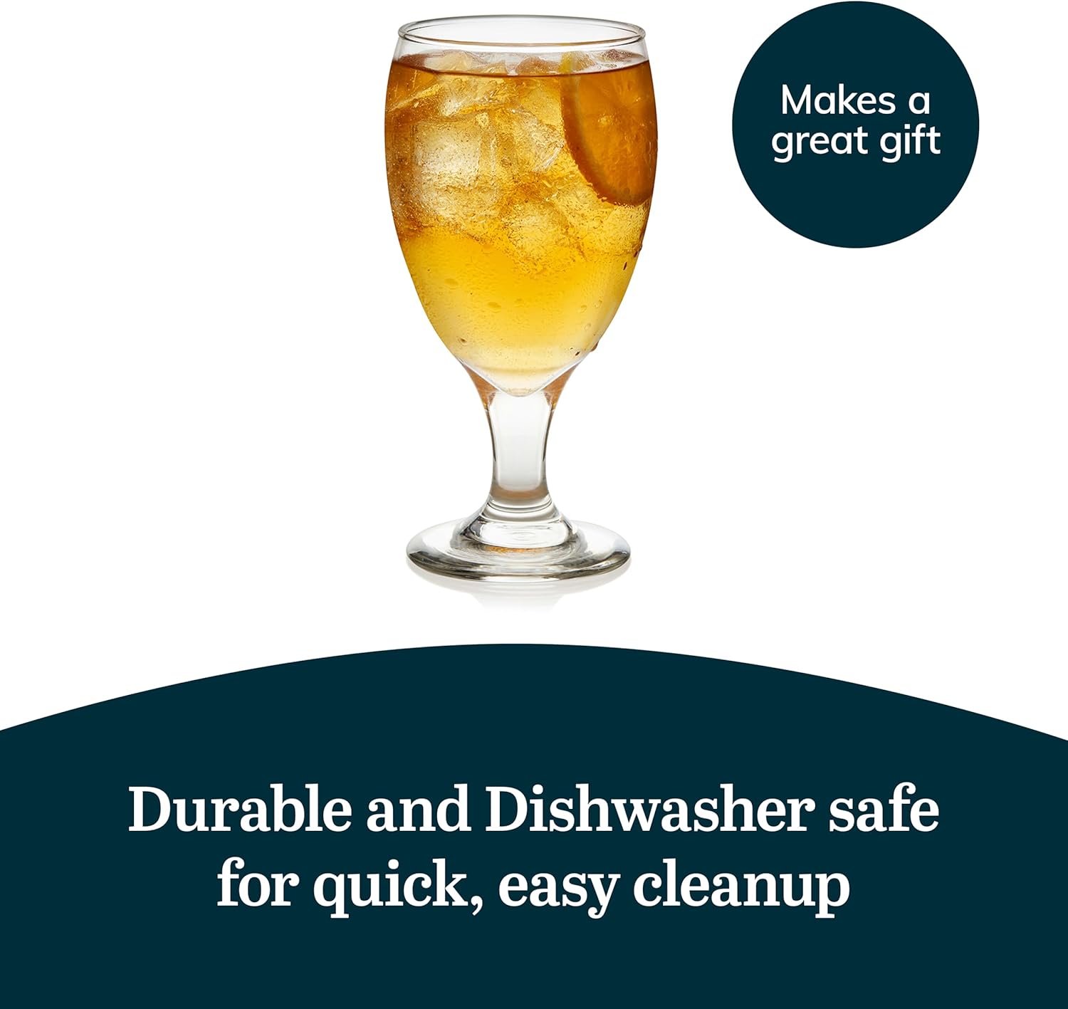 Libbey Classic Glass Goblets Set Of 12, Dishwasher Safe 16.25 Oz Drinking Goblets for Tea, Sangria and More, Ideal Stemmed Water Glasses for Parties