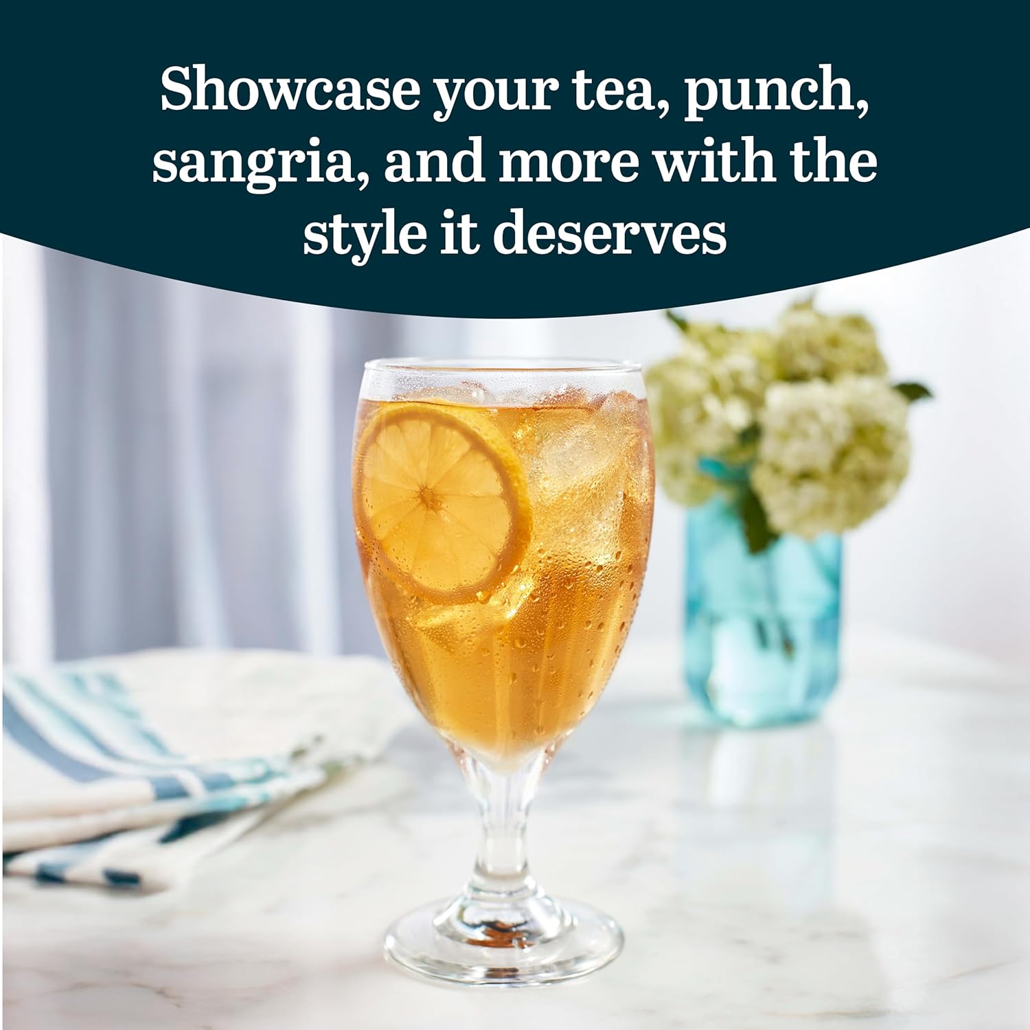 Serve Any Drink: This set of 12 aesthetic drinking glasses with stem is suited for all purposes – these multi-purpose stemmed drinking glasses work well with serving iced tea, lemonade or sangria