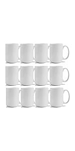 TANGLONG Sublimation Mugs 15 oz, Sublimation Blanks, Bulk Coffee Mugs,White Cups for Coffee,Latte, Soup, Milk, Hot Cocoa Set of 12