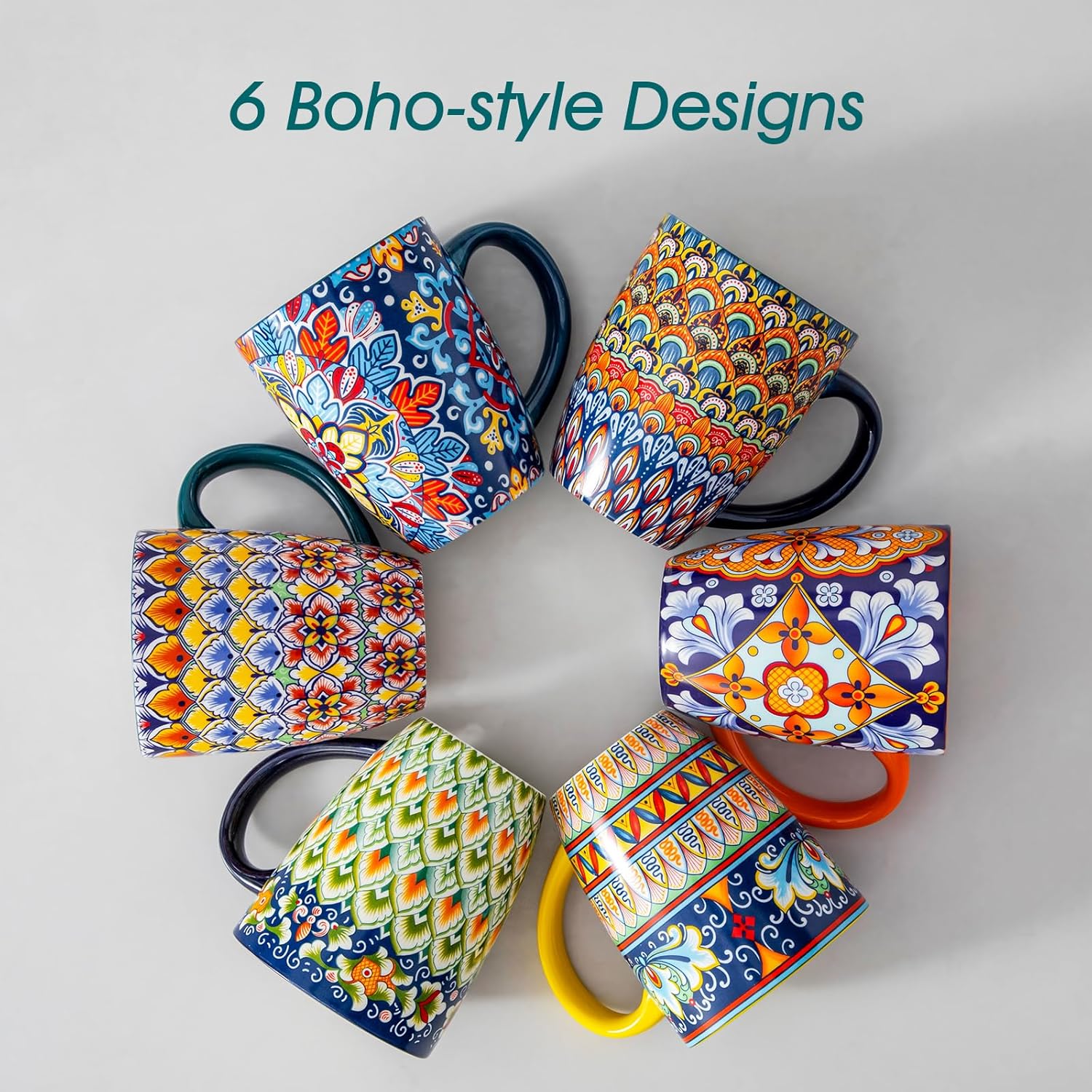 vancasso 16 oz Coffee Mugs Set of 6, Large Ceramic Mug with Handle, Boho Coffee Cups for Latte, Cappuccino & Hot Chocolate, Dishwasher & Microwave Safe Gift Set, Series SIMI