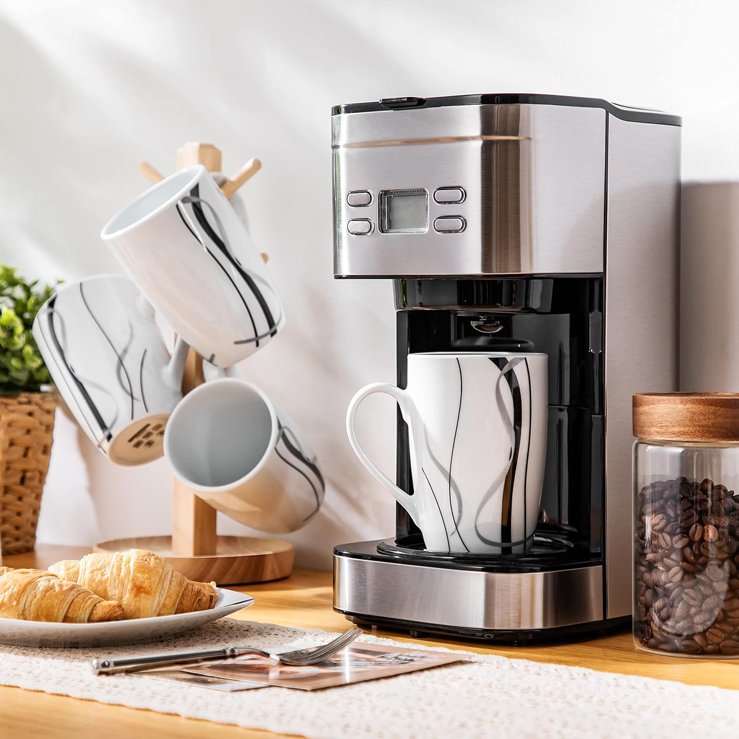 Classic large coffee mugs set, non-slip and stackable bottom design for easy storage. The white mug with black line design is elegant and bring the beauty of nature to the table with warm, making your kitchen even more cosy.